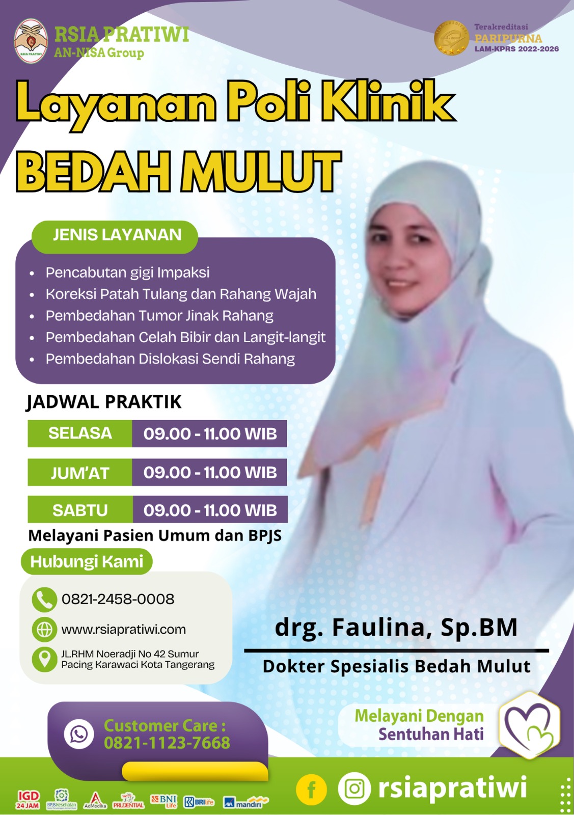 Makasih RS.pratiwi penanganan bedah mulut nya cepat terimakasih juga buat dokter faulina