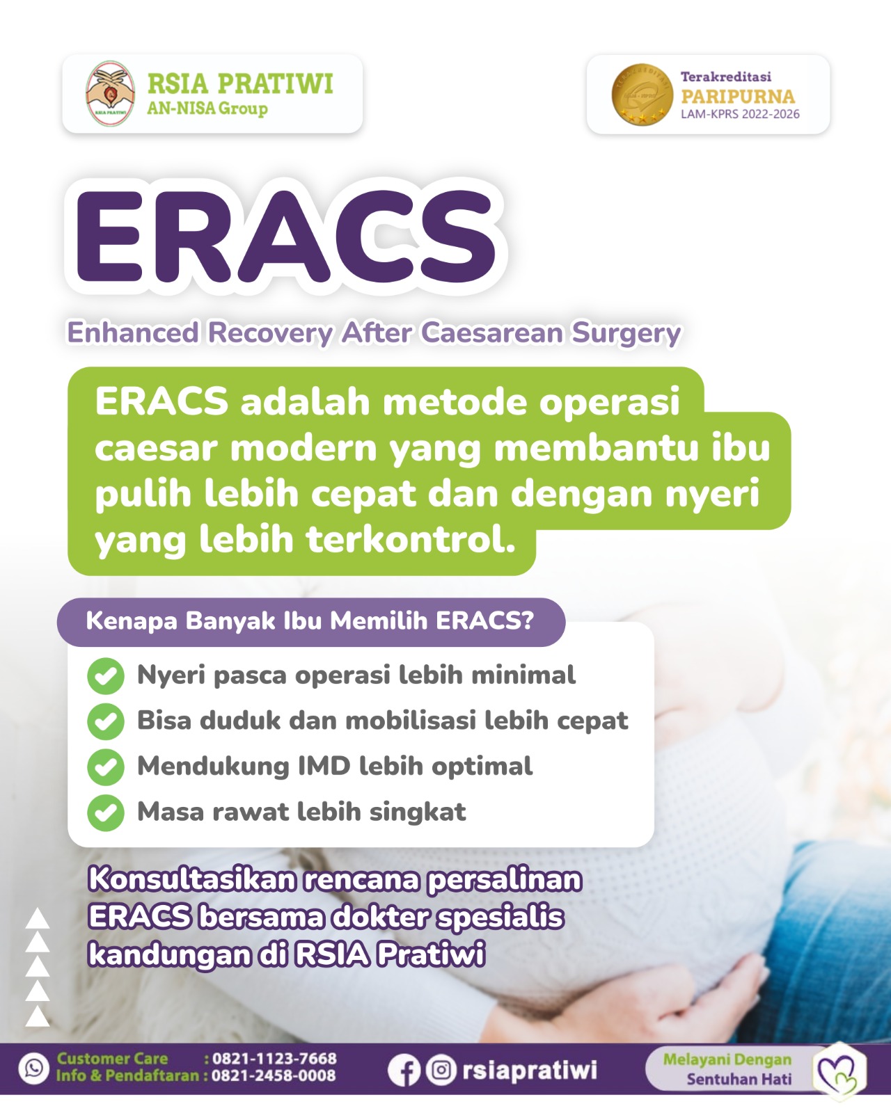 Berbeda dengan operasi caesar konvensional, ERACS mengutamakan manajemen nyeri yang lebih optimal, mobilisasi lebih cepat, serta pendekatan medis yang membantu ibu bisa segera beraktivitas dan menyusui setelah persalinan.